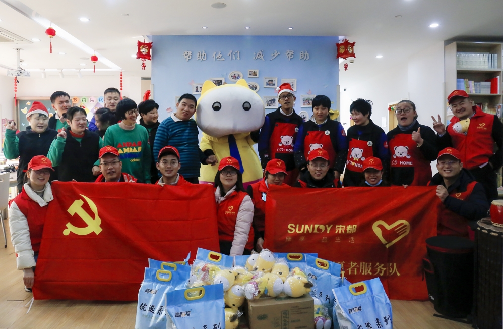 为了让生活在杭州市江干区弯湾托管中心的智障少年们能够过上一个祥和快乐的节日,宋都集团党委、团委联合优秀青年组成了志愿者小分队,带着农业公司有机米、致中和龟苓膏及宋宋都首席品牌官--宋嘟嘟玩偶等趁着午休时间来托管中心进行慰问。